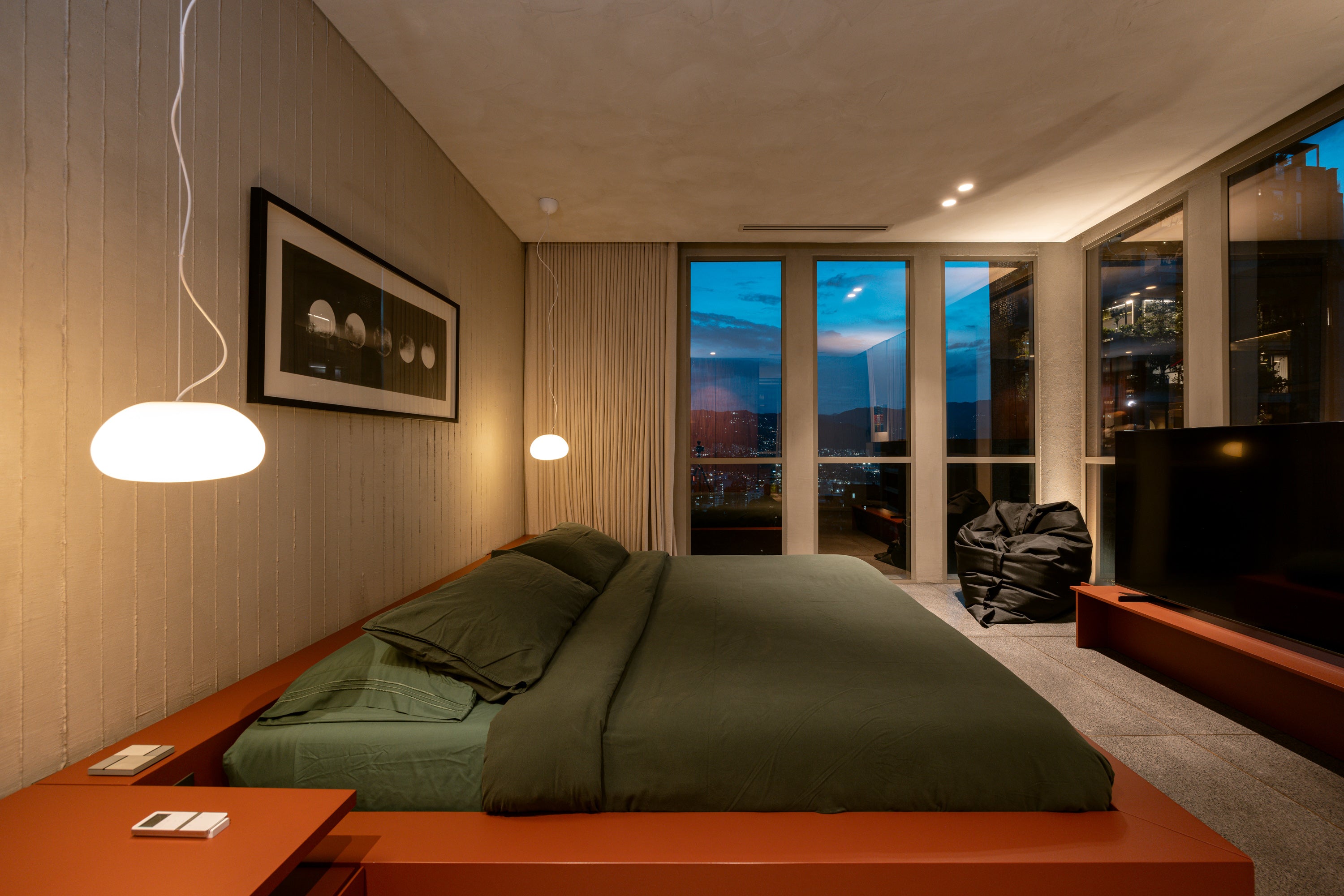 • Zona social: amplia sala y comedor integrados, proyector con pantalla y vista panorámica a la ciudad.