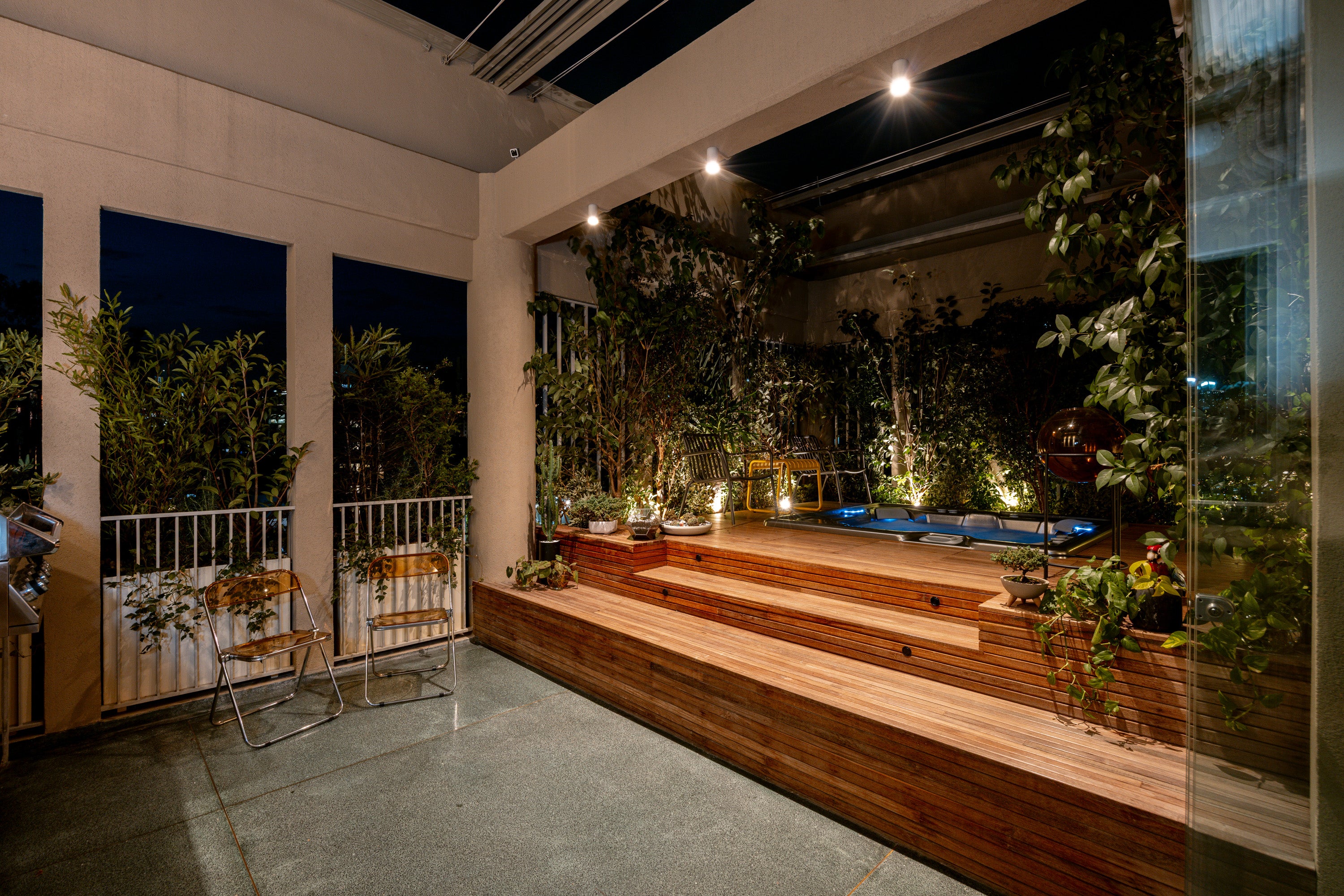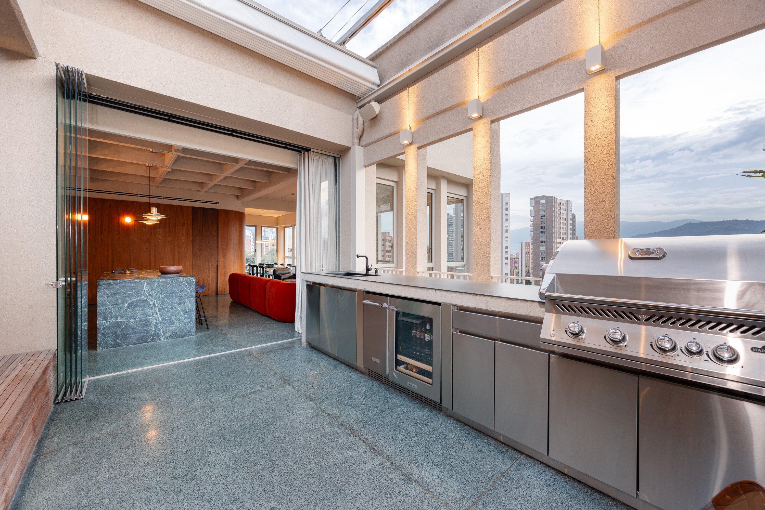 • Terraza privada: con jardineras, jacuzzi, BBQ y techo corredizo.