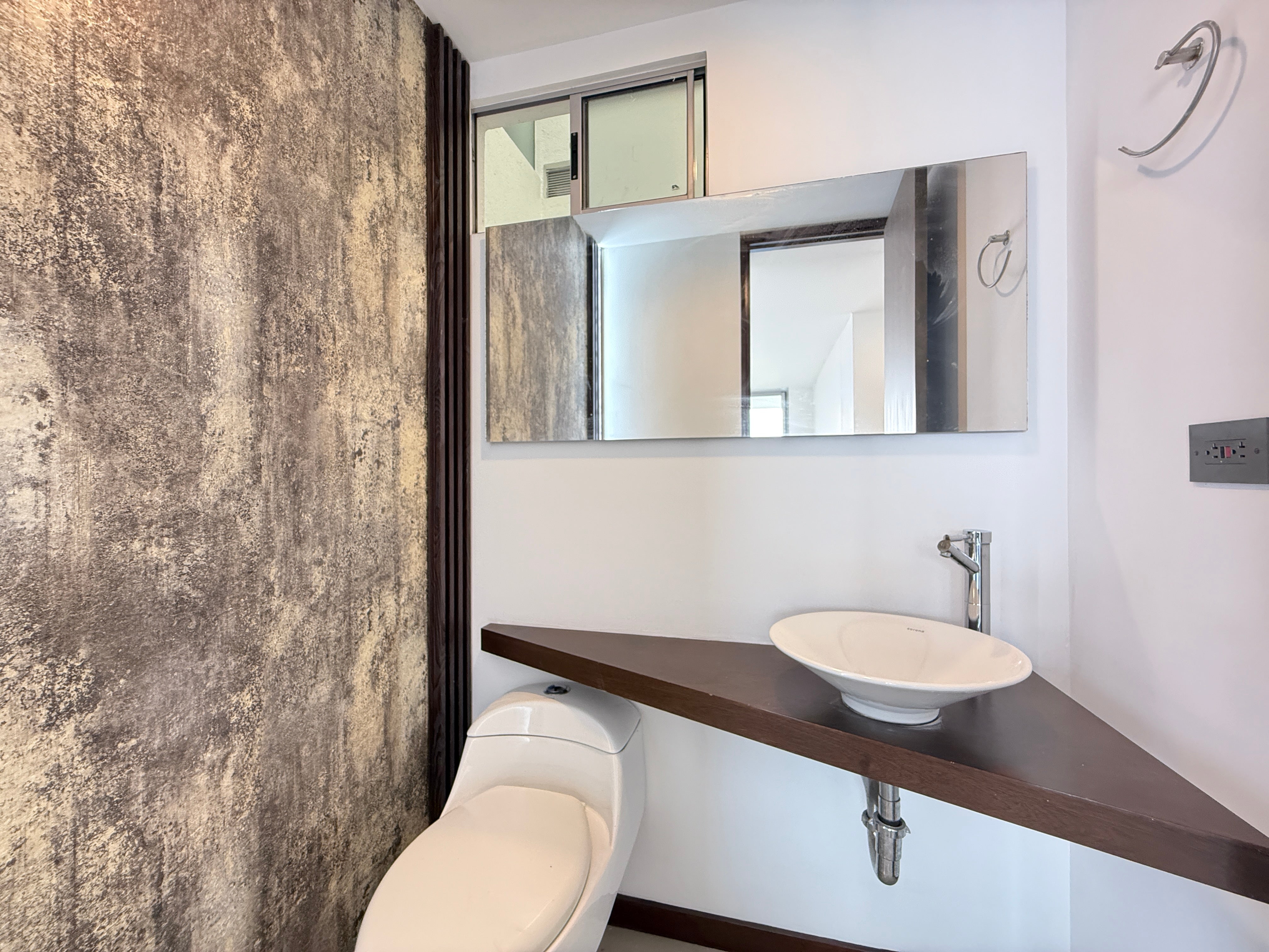 Cuenta con tres habitaciones, sala con salida al balcón, cocina integrada con acabados modernos y una práctica zona de ropas. Su distribución funcional permite disfrutar de ambientes amplios y confortables, ideales para quienes buscan bienestar y una ubicación privilegiada.