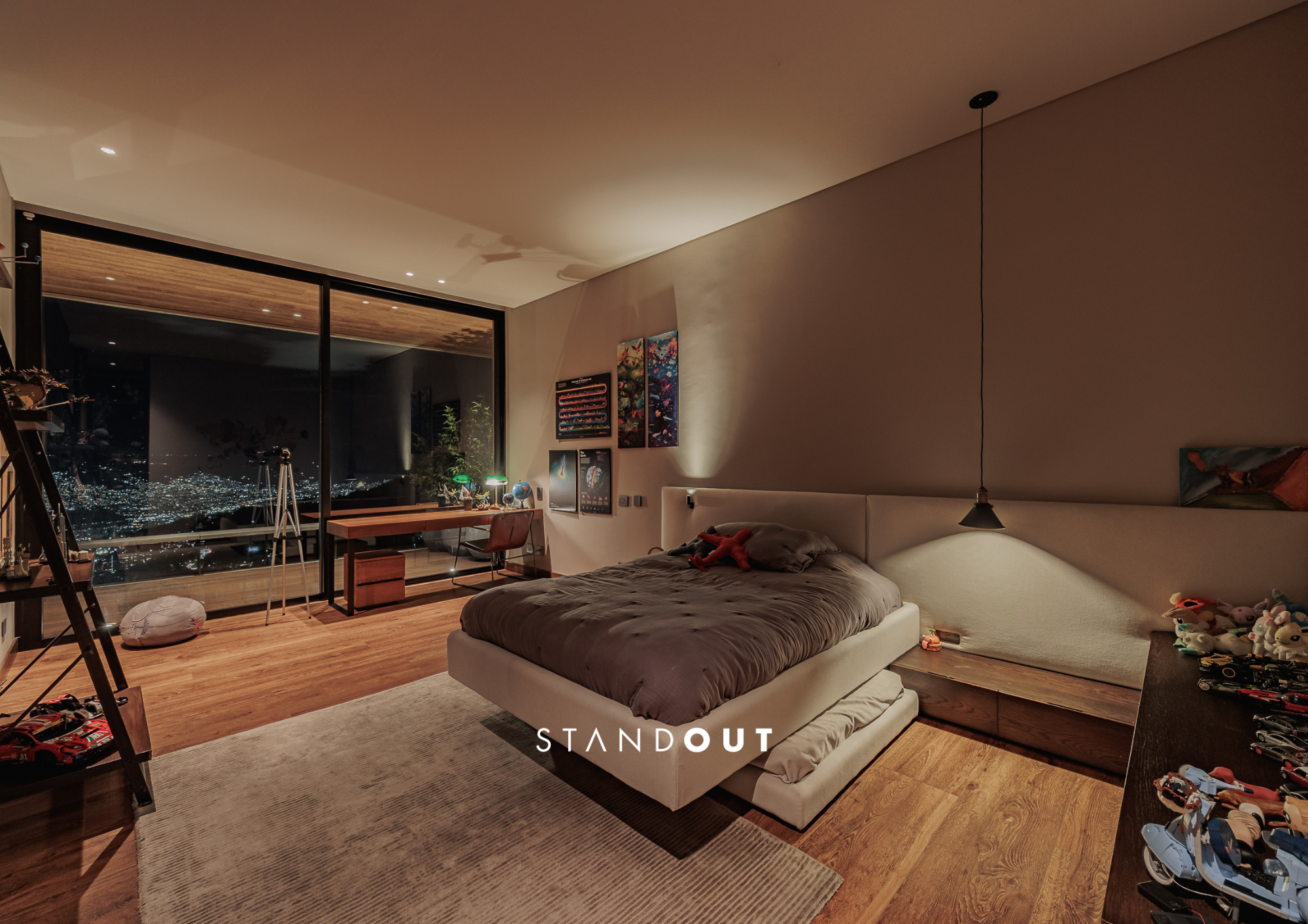 3 habitaciones más alcoba de servicio, cocina abierta, estudio, sala de TV familiar, gimnasio, jacuzzi, piscina y 4 parqueaderos.