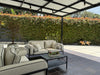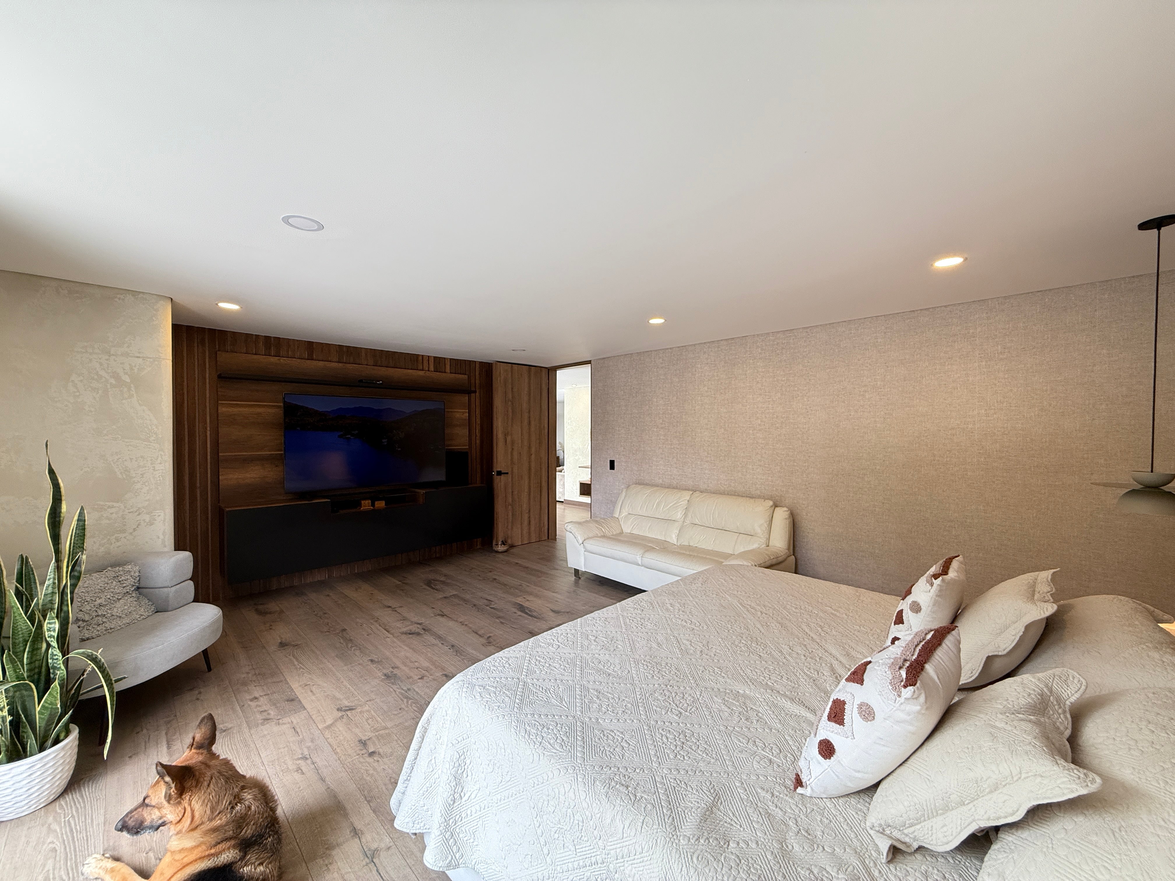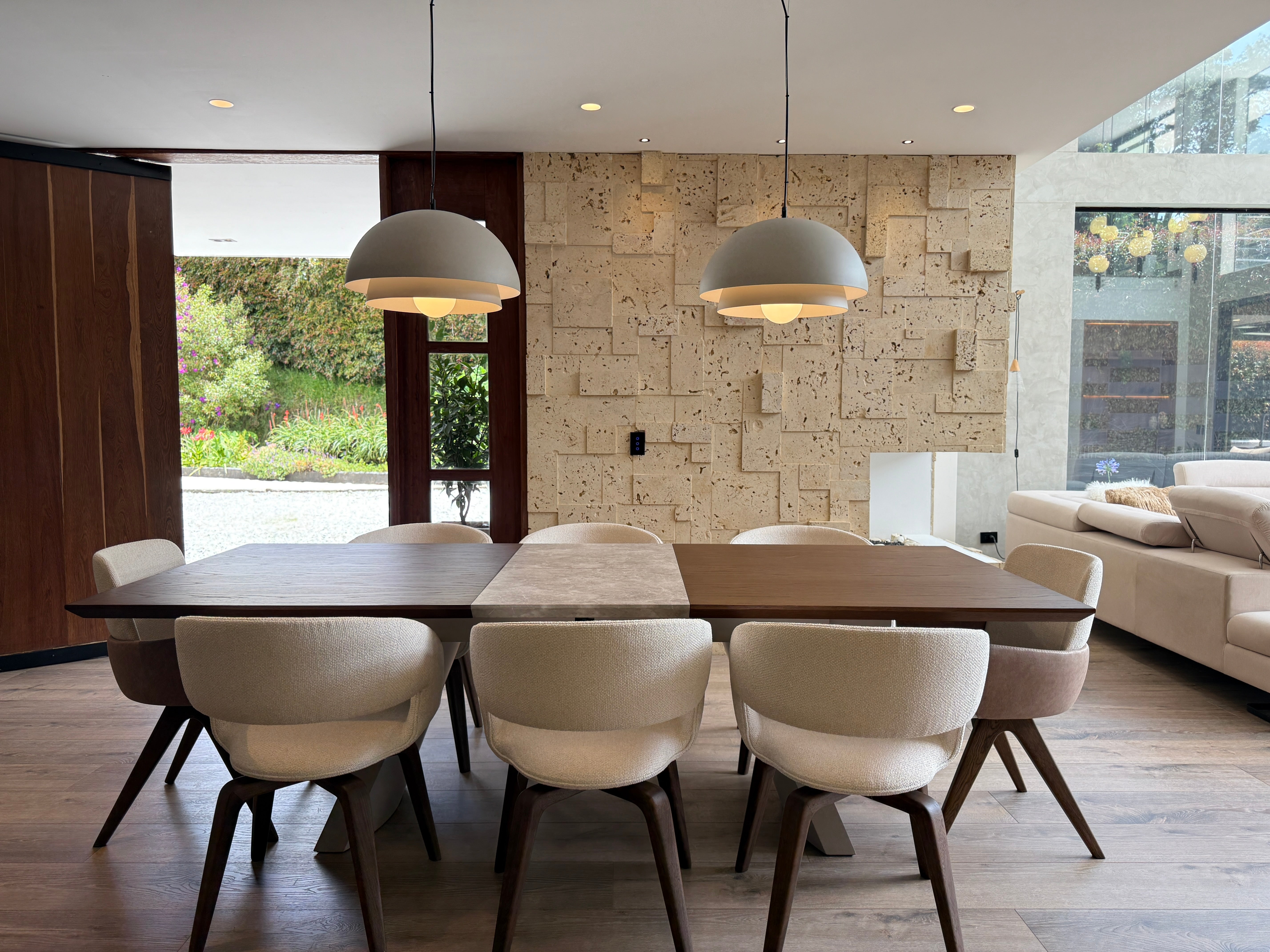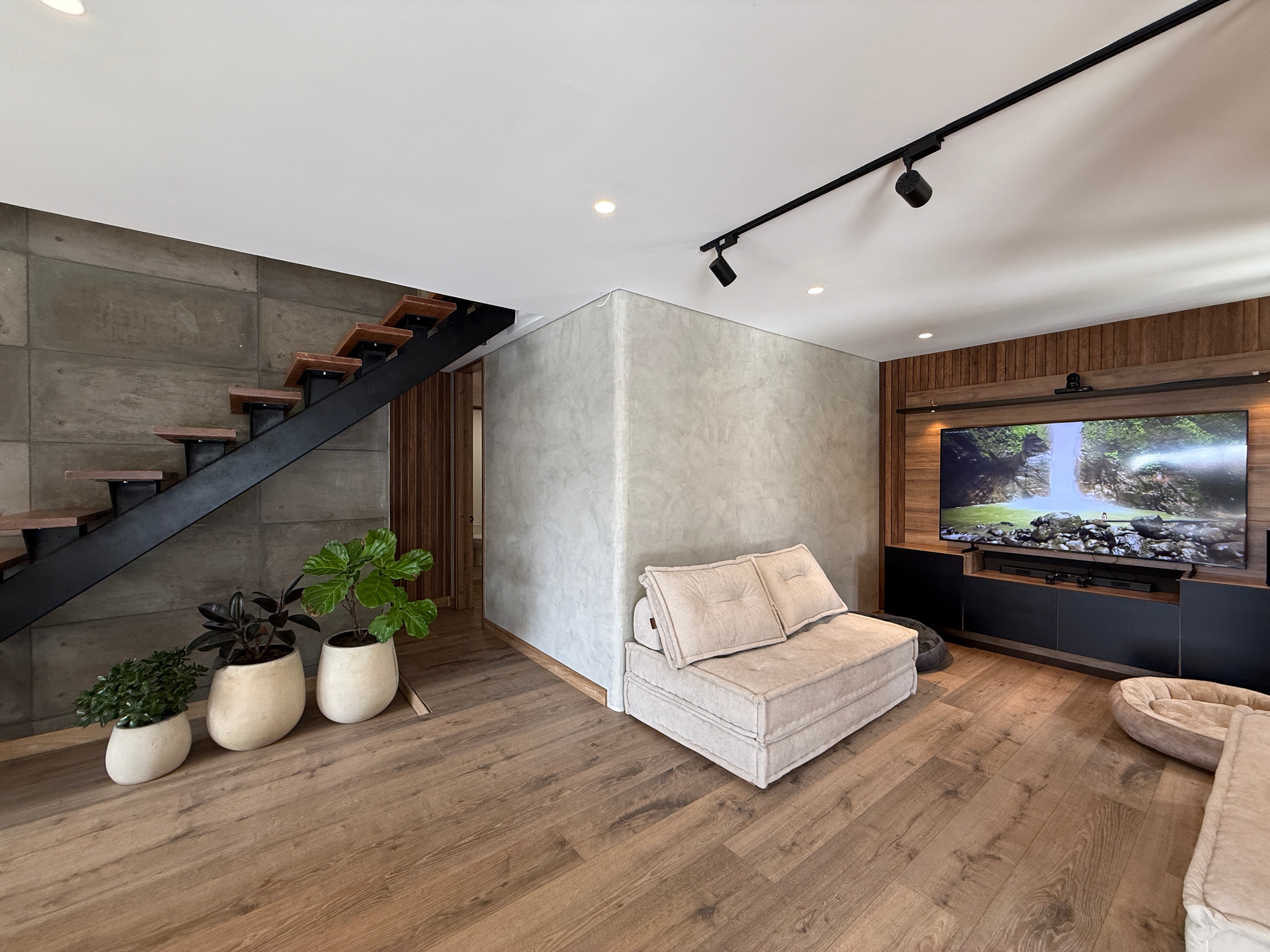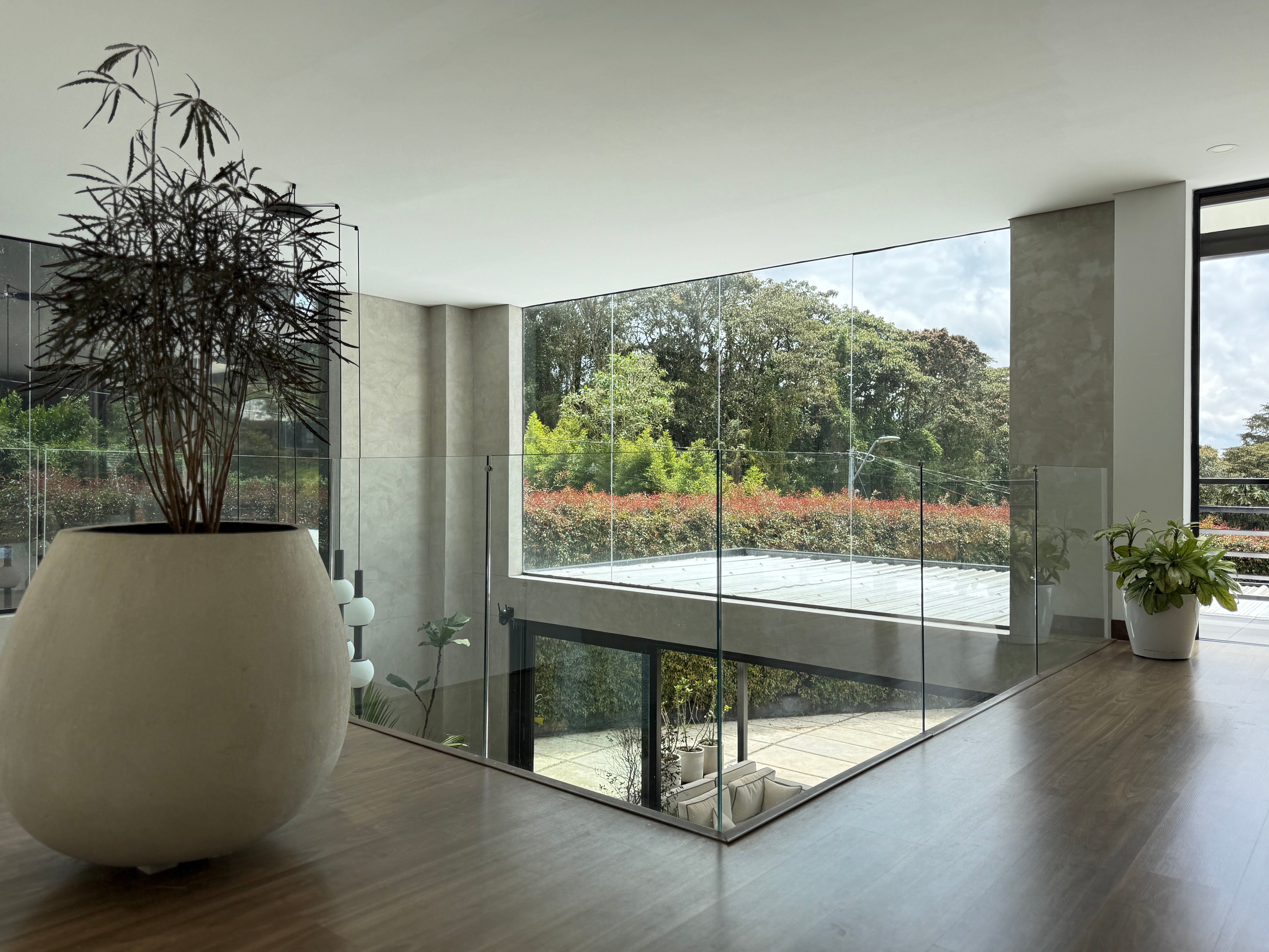 En el primer nivel encontrarás dos alcobas con baño y clóset, baño social con jardín natural, cocina italiana de gran amplitud, zona de ropas independiente y área social a doble altura que se integra con la terraza principal.