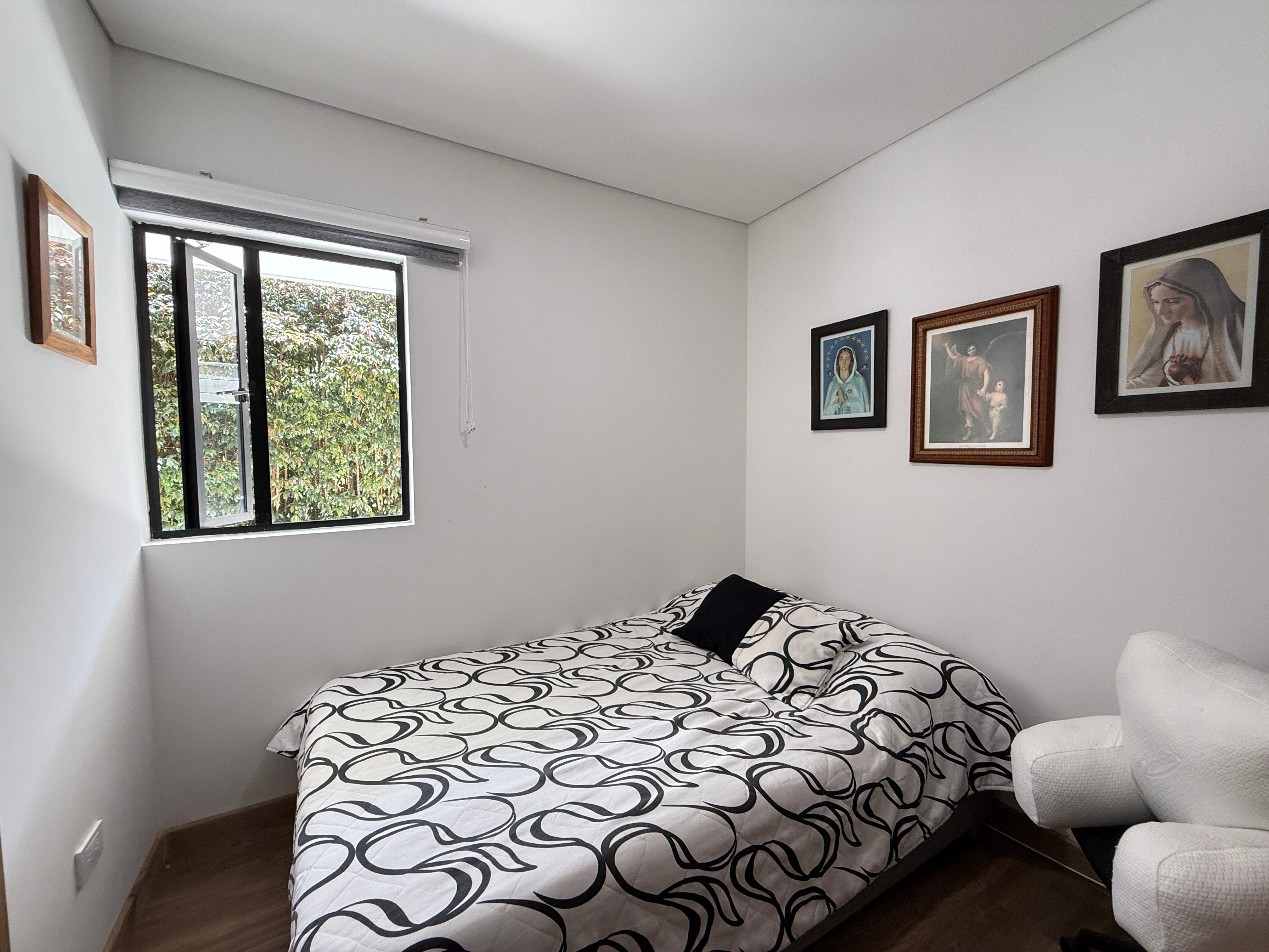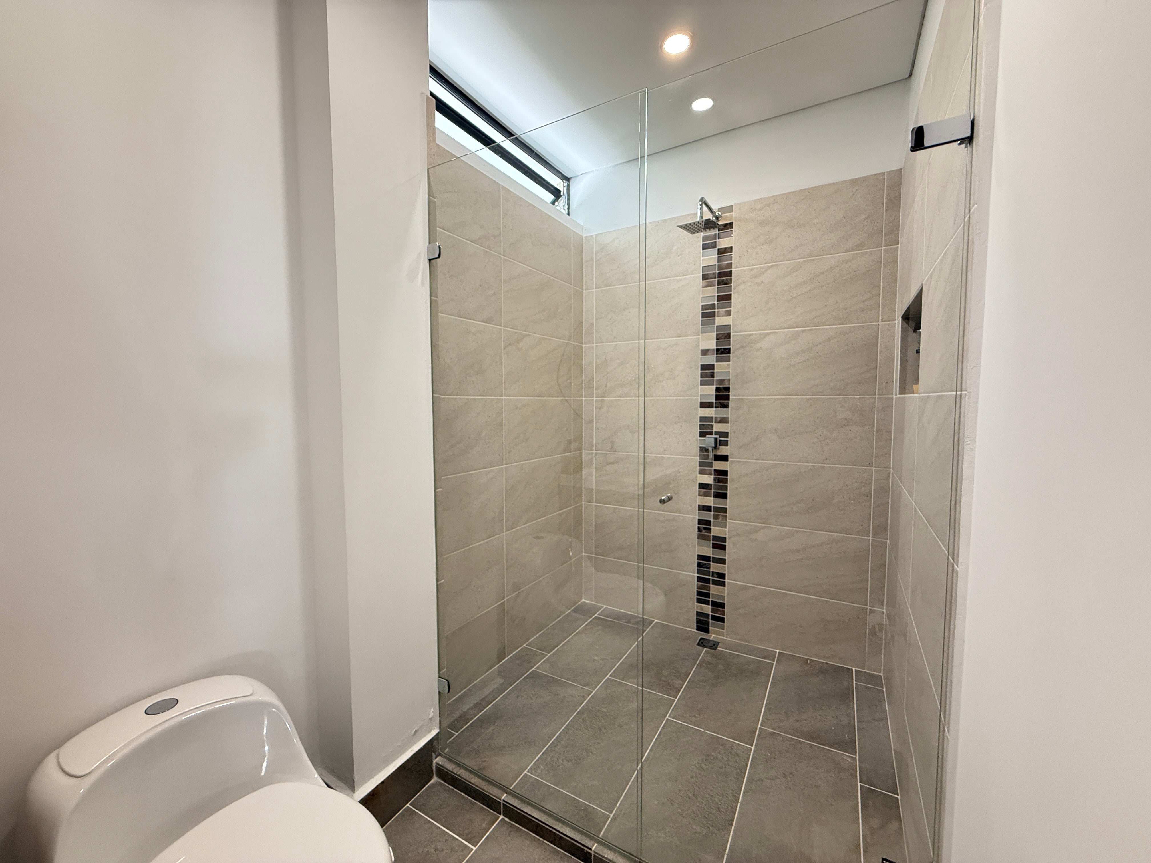 En el segundo nivel se ubican tres alcobas con baño y vestier, para un total de cinco habitaciones, todas con iluminación y ventilación natural.