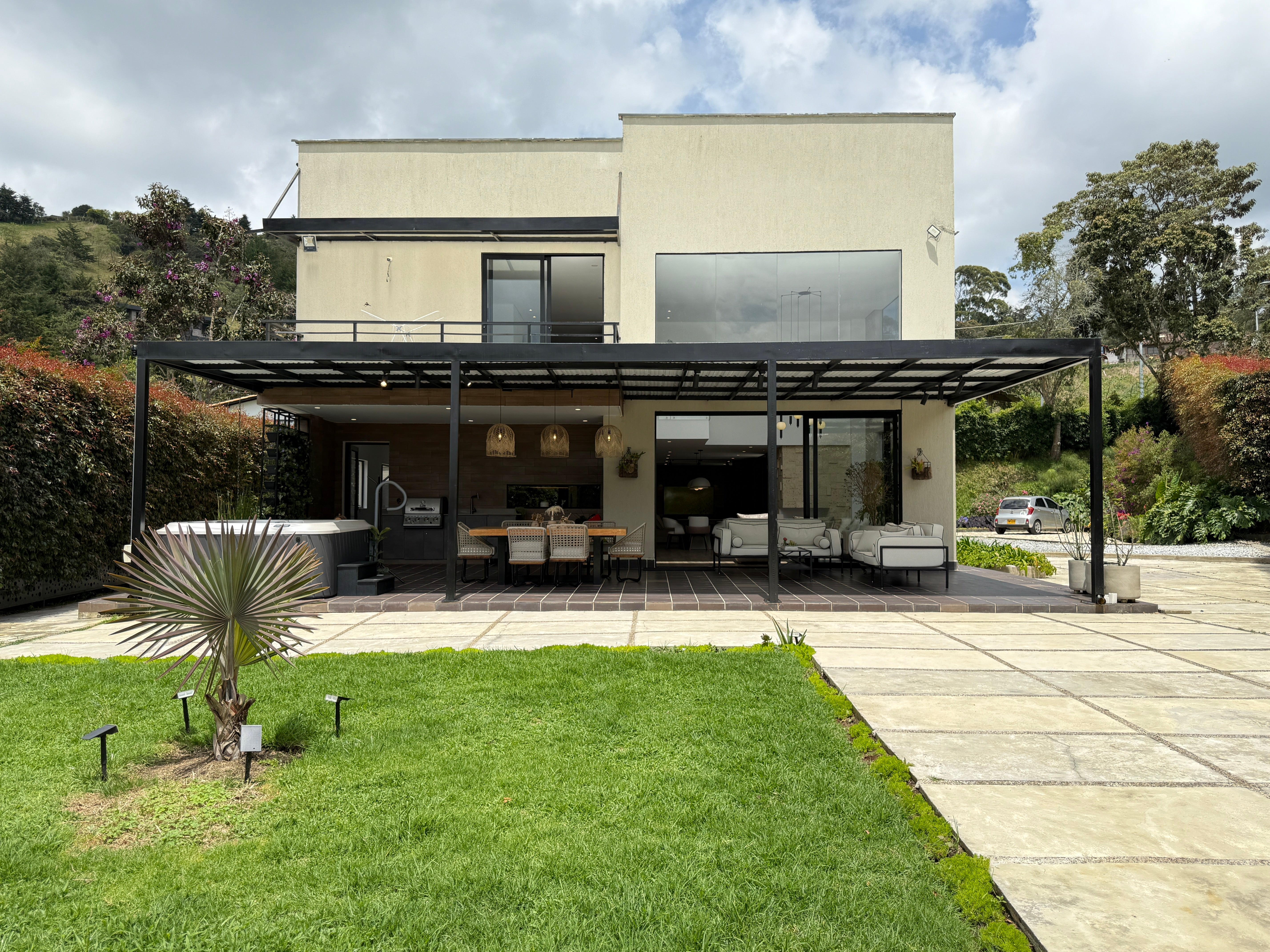 La terraza se convierte en el lugar ideal para disfrutar de momentos al aire libre, equipada con jacuzzi, zona BBQ y vista verde. La propiedad cuenta además con parqueadero cubierto para cuatro vehículos.